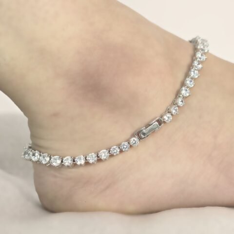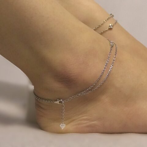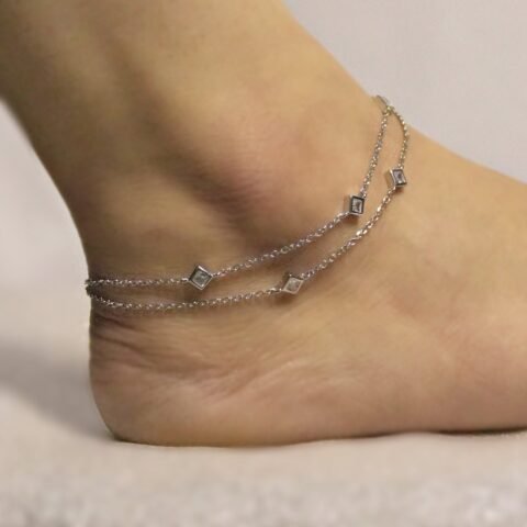 Silver Studded American Diamond Square Double Layer Italian Anklet