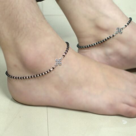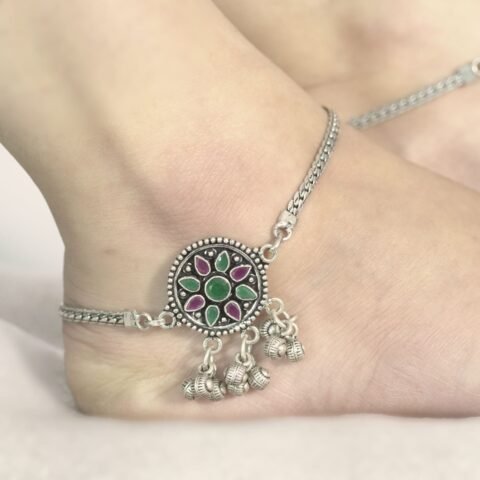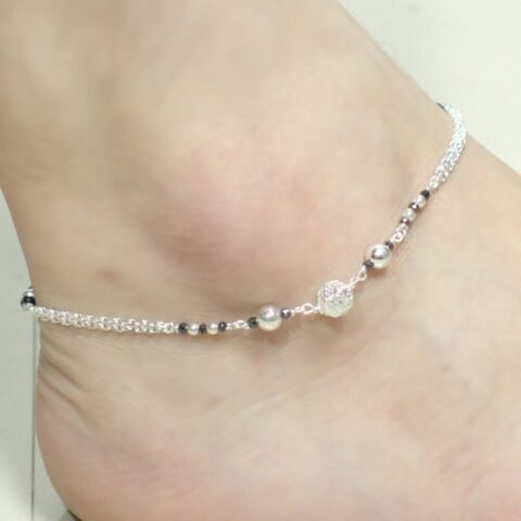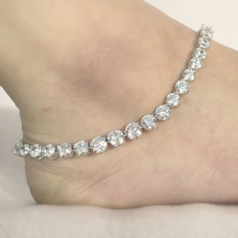 Silver Studded American Diamond Circle Shape Double layer Italian Anklet