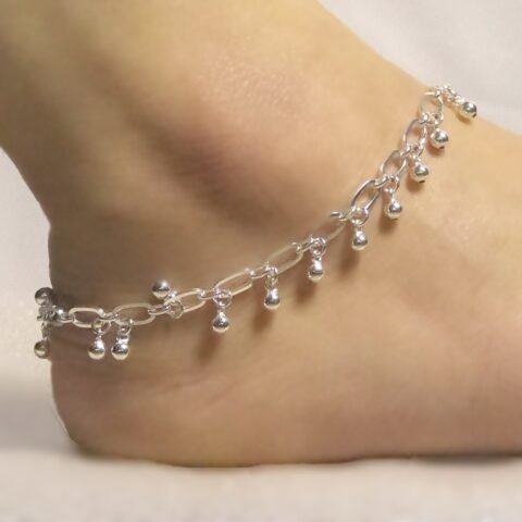 Sterling Silver Charm Airplan Moti Chain Anklet