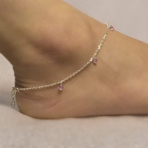 Silver Studded American Pink Stone Diamond Italian Anklet