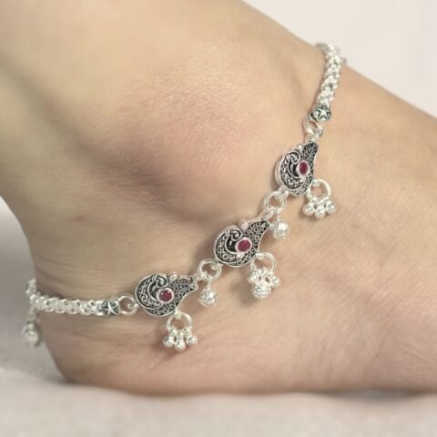 Oxidise Silver Charm Chain American Pink Diamond Anklet