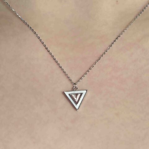 Silver Triangle AD Pendant Link Chain with Earrings