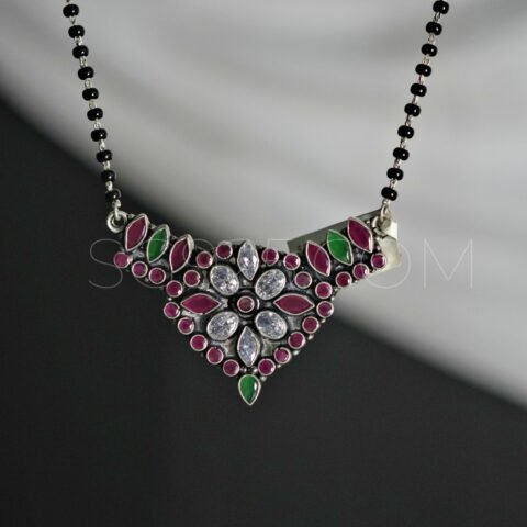 Silver Floral AD Mangalsutra