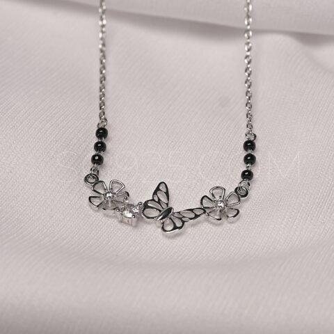 Silver Floral Butterfly Link Modern Mangalsutra