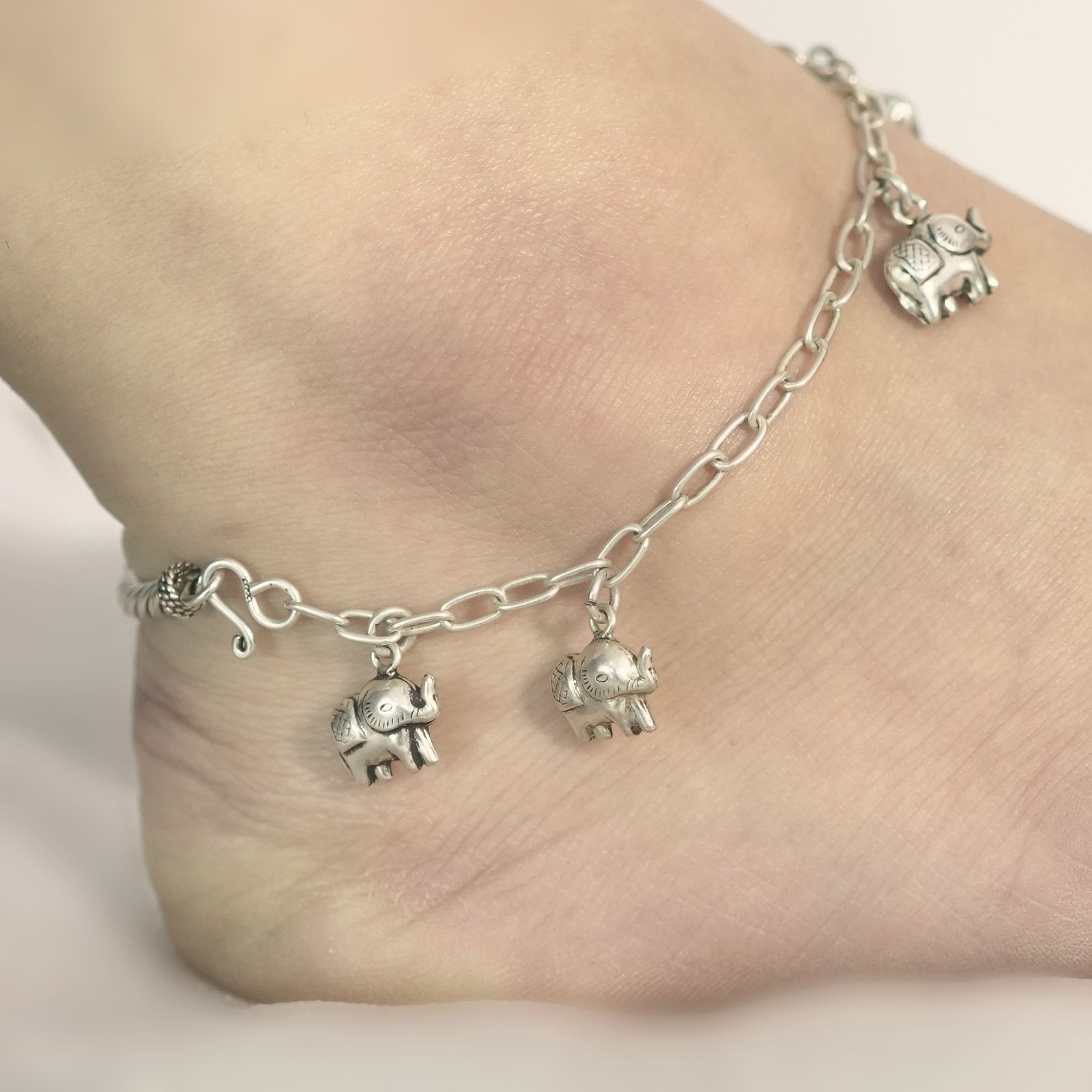 Sterling Silver Charm Flower Shape Ball Chain Italian Anklet