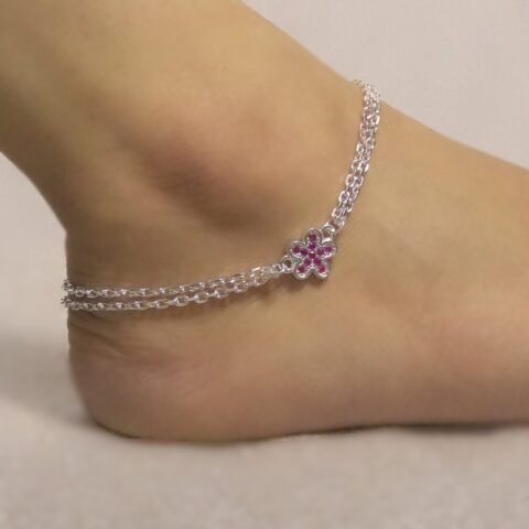 Sterling Silver Double Layer Floral design Anklet