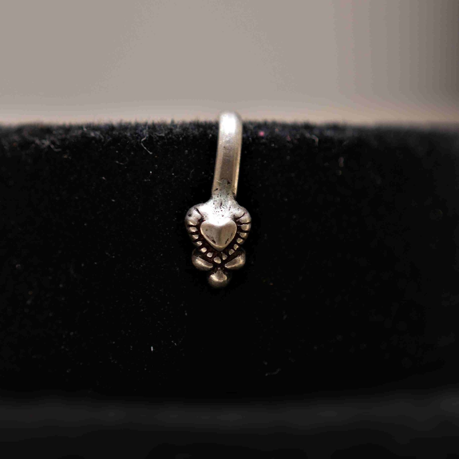 Oxidised Silver Heart Motif Nose Pin