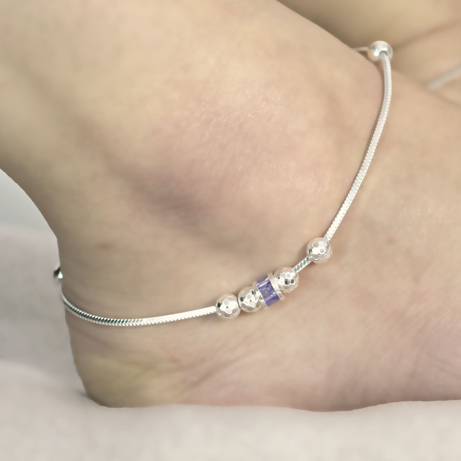 Silver ball link white chain Anklet for women