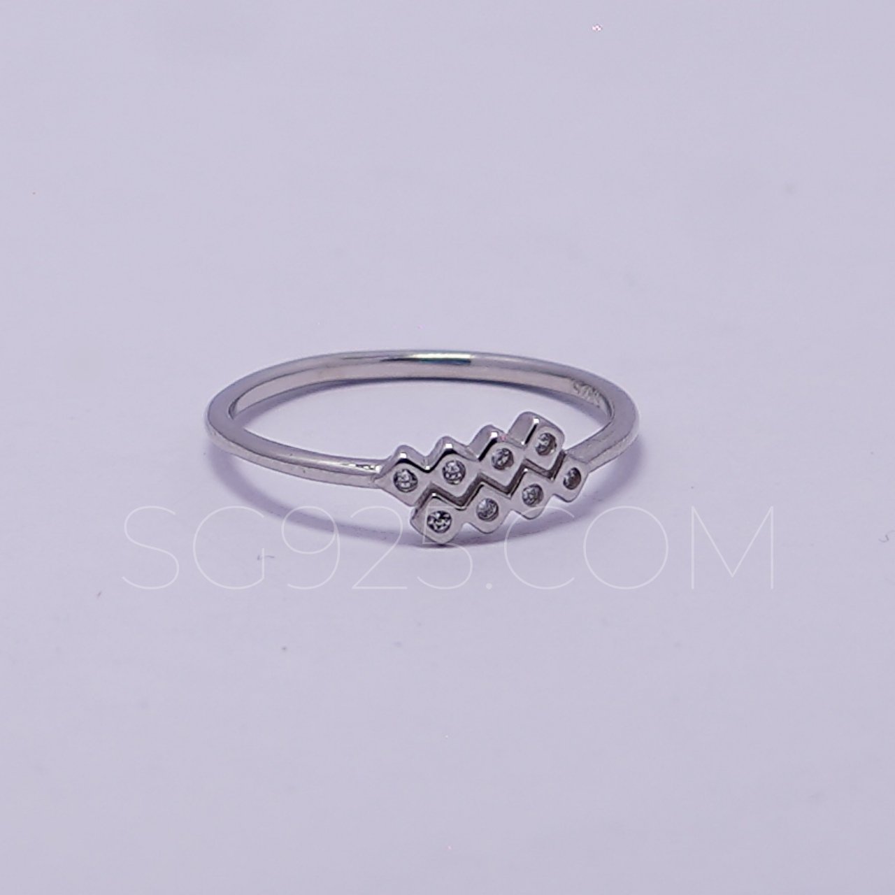Silver Royal Green Cutstone AD Modern Floral Rotatable Ring