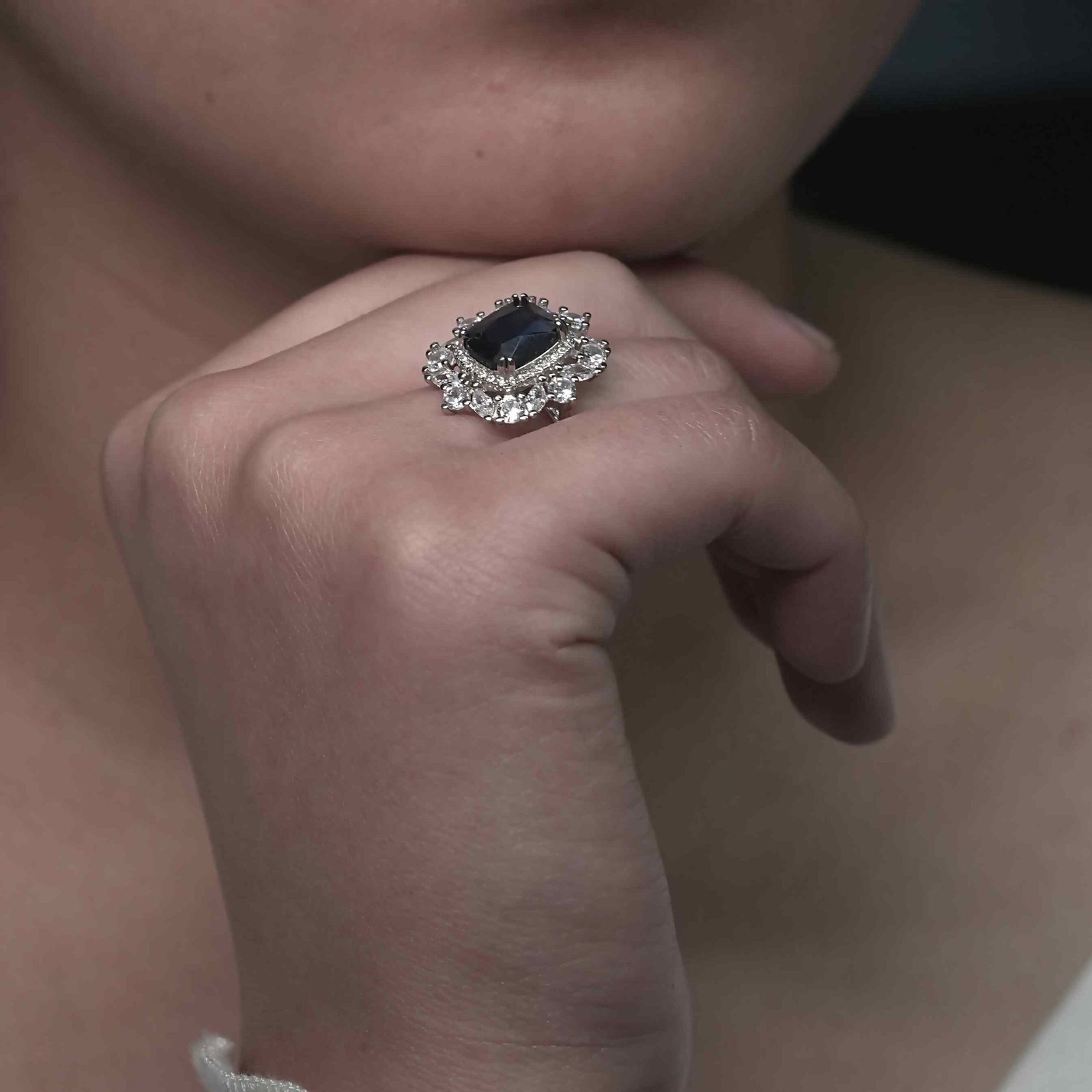 Silver Rich Pink Cutstone AD Modern Floral Rotatable Ring