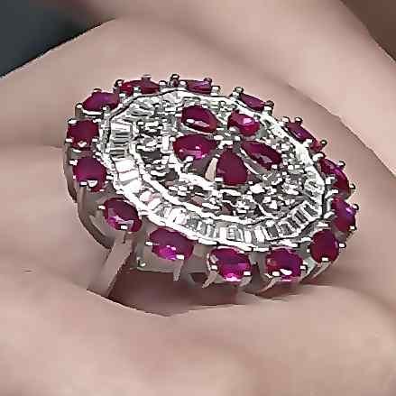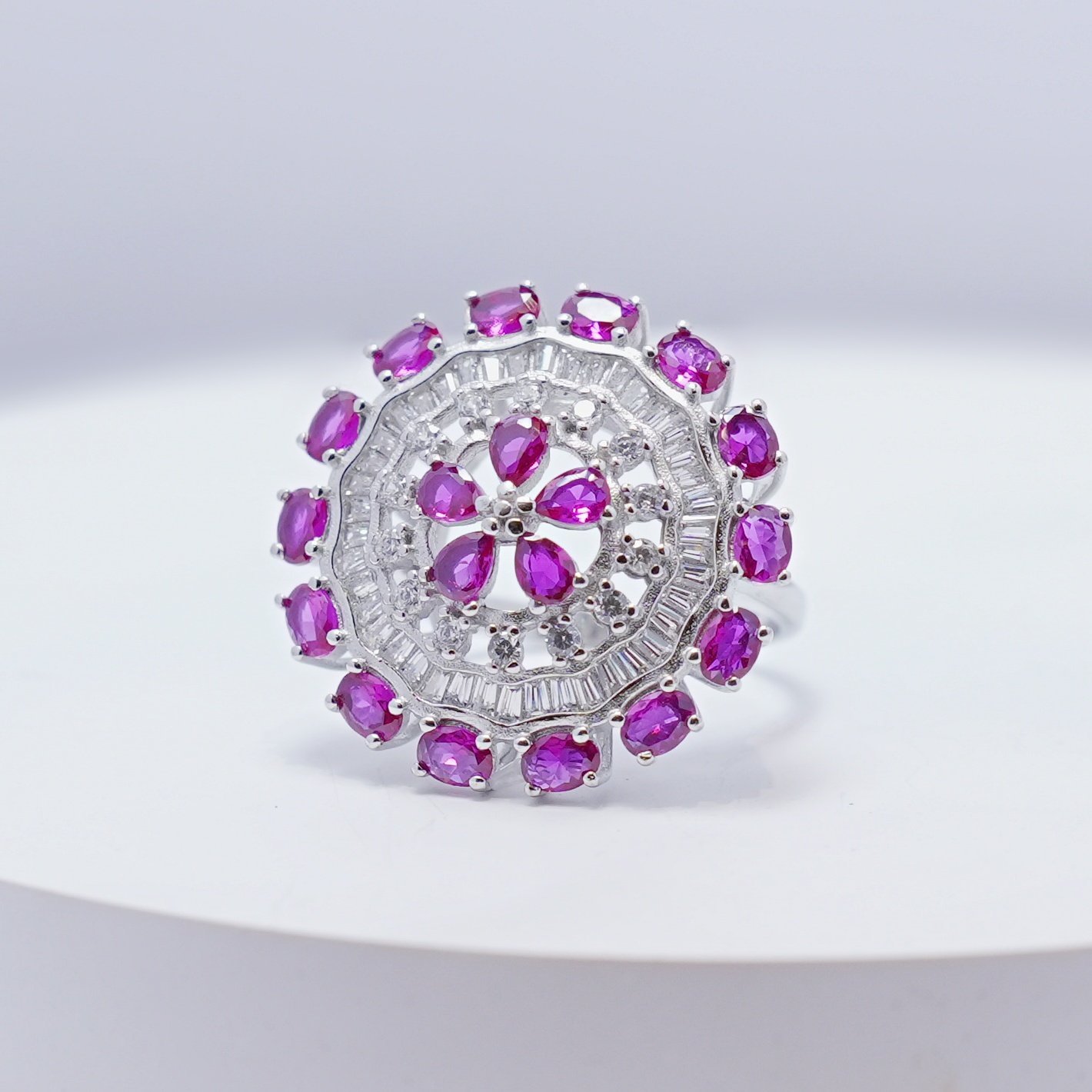 Silver Rich Pink Cutstone AD Modern Floral Rotatable Ring