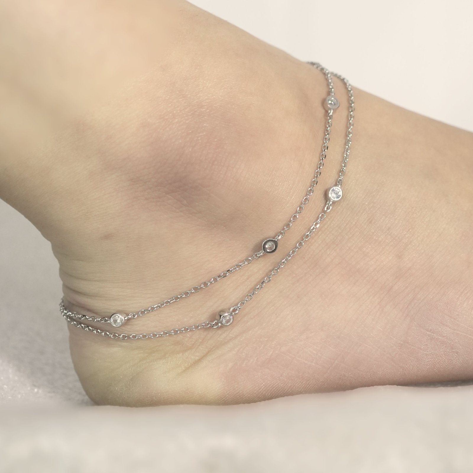 Silver Studded American Diamond Circle Shape Double layer Italian Anklet