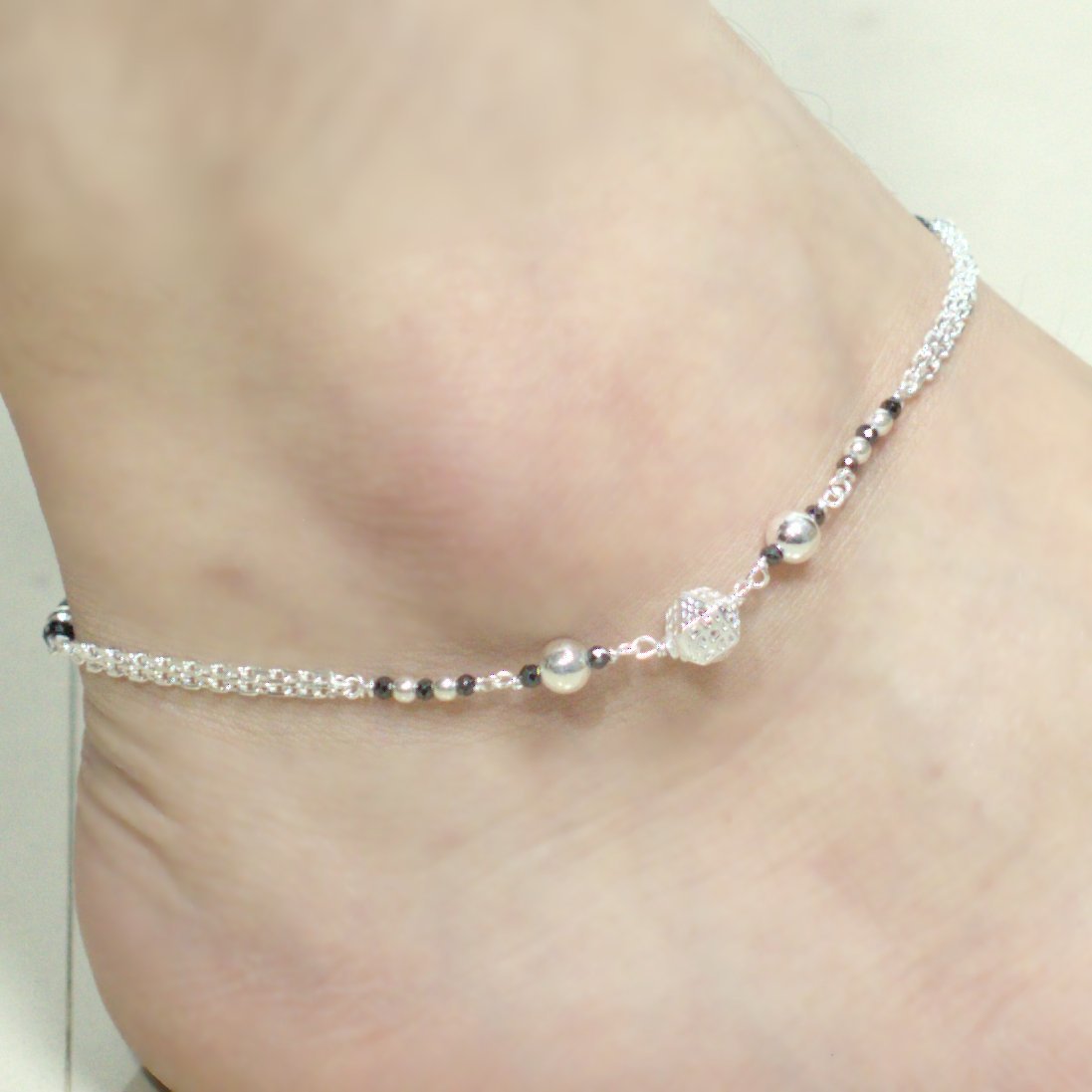 Oxidised ball shape anklet for women