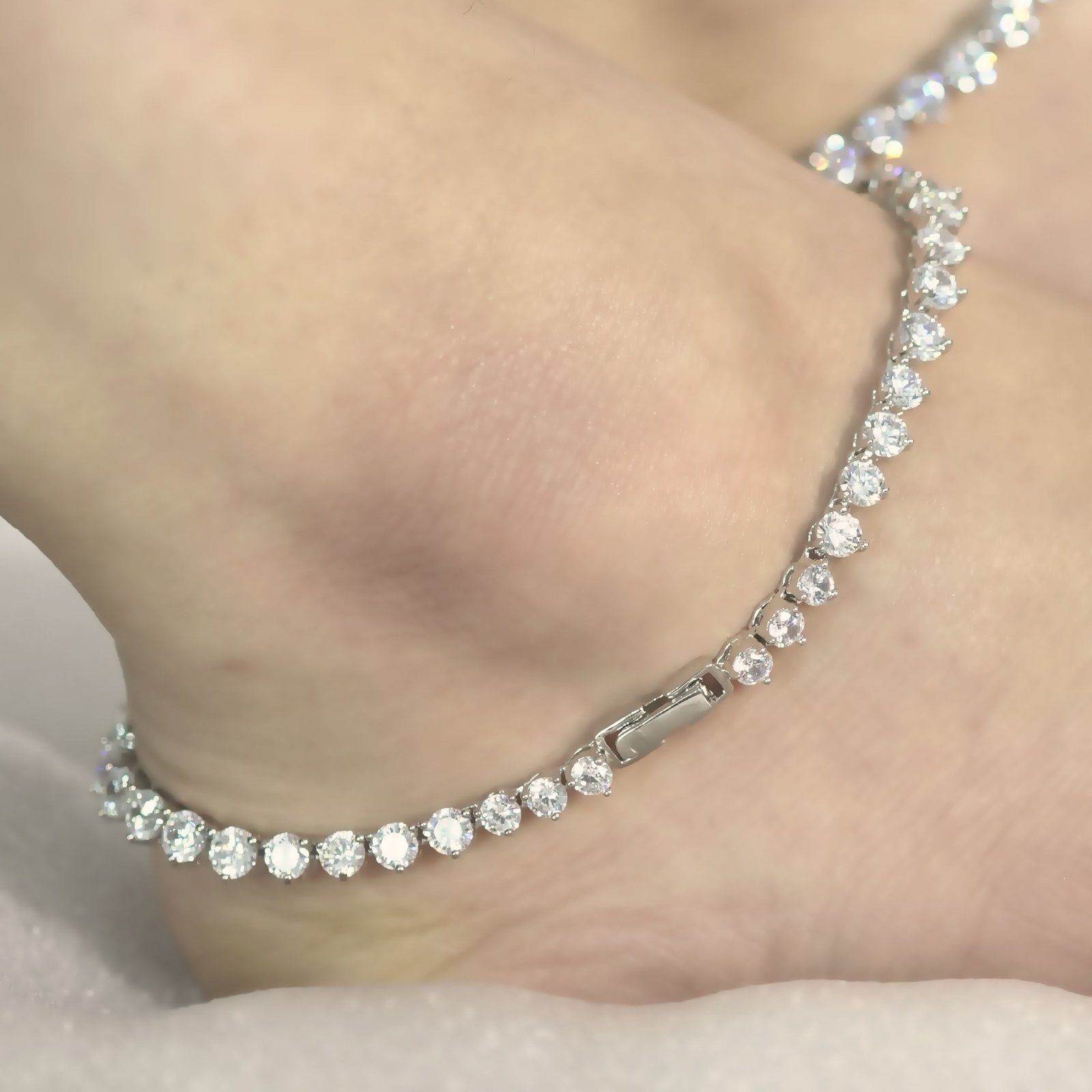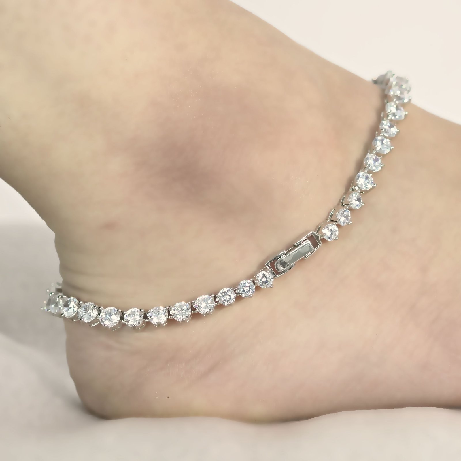 Silver white stone link anklet for women