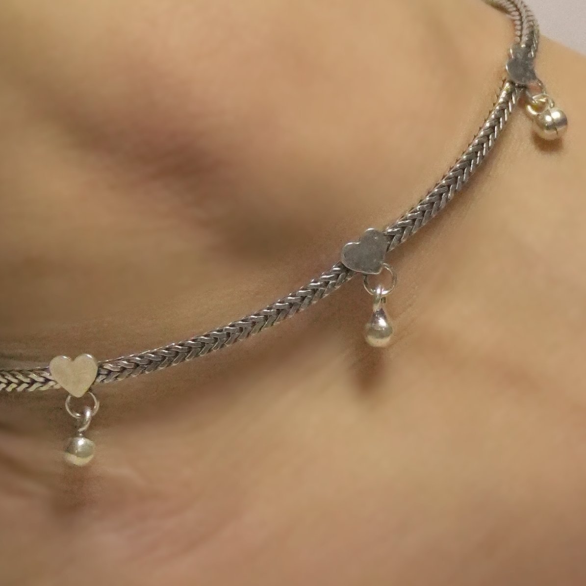 Sterling Silver Heart Link Moti Anklet