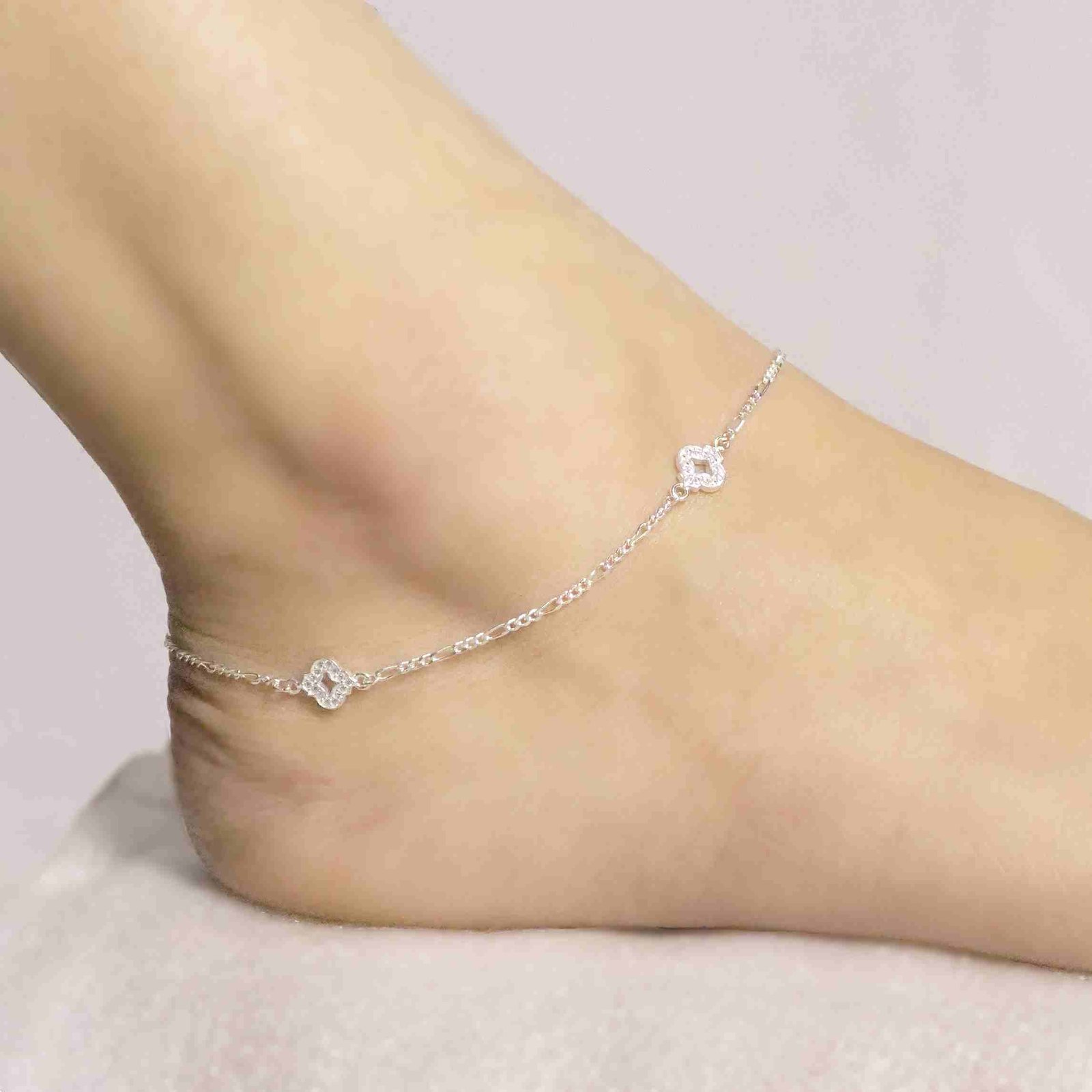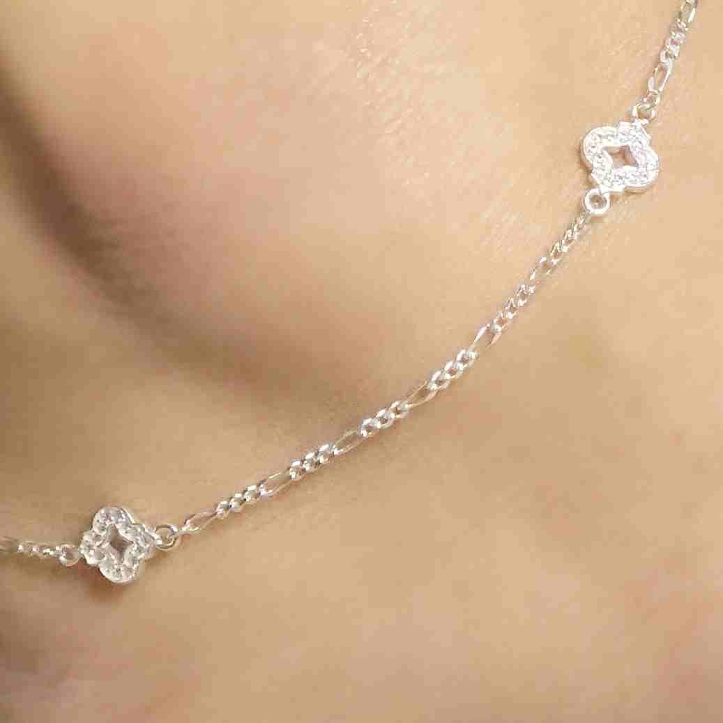 Sterling Silver Double Layer Floral design Anklet