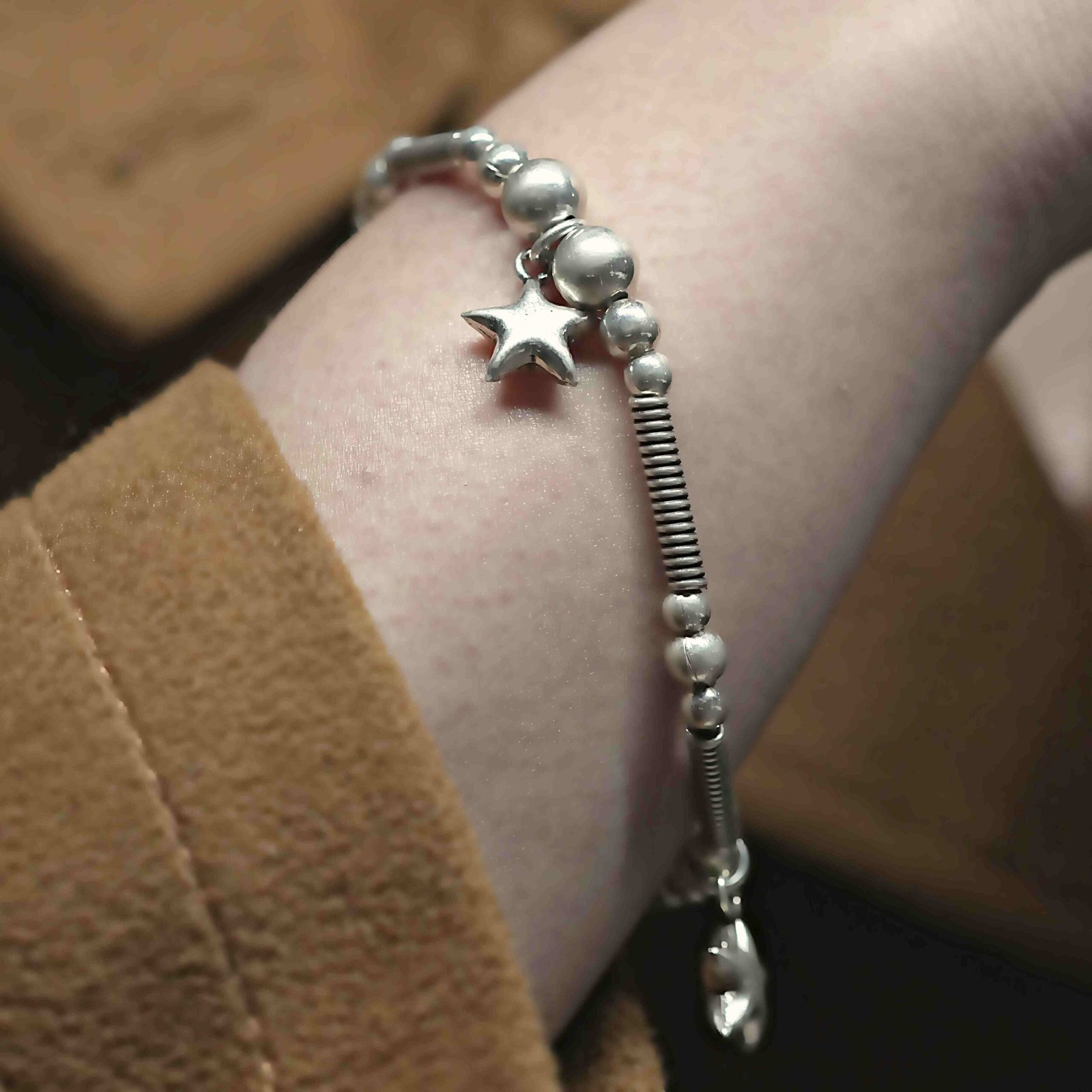 Traditional Oxidised Start Balls Spring Chain bracelet